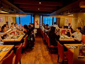 夜の締めくくりは、道頓堀の居酒屋でみんな揃って乾杯。